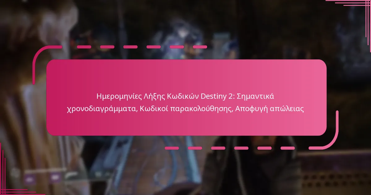 Η κατανόηση των ημερομηνιών λήξης για τους κωδικούς του Destiny 2 είναι ζωτικής σημασίας για τους παίκτες που επιθυμούν να μεγιστοποιήσουν τις ανταμοιβές τους εντός του παιχνιδιού. Αυτές οι προθεσμίες καθορίζουν την εγκυρότητα των προωθητικών κωδικών, των Twitch Drops και των ανταμοιβών του Season Pass, καθιστώντας απαραίτητο να τις παρακολουθούν προσεκτικά. Με την εφαρμογή ενός αξιόπιστου συστήματος παρακολούθησης των ημερομηνιών λήξης και τη χρήση διαθέσιμων εργαλείων, οι παίκτες μπορούν να αποφύγουν την απώλεια αποκλειστικών αντικειμένων και προωθήσεων.