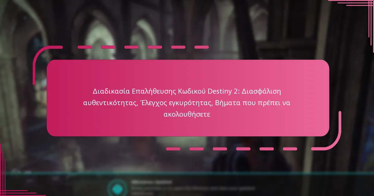 Για να επαληθεύσετε τους κωδικούς σας για το Destiny 2, πρέπει να ακολουθήσετε μια απλή διαδικασία που διασφαλίζει την αυθεντικότητα και την εγκυρότητα των κωδικών σας. Αυτό περιλαμβάνει τον έλεγχο του κωδικού σε επίσημες πηγές και τη χρήση των κατάλληλων εργαλείων για την επαλήθευση.