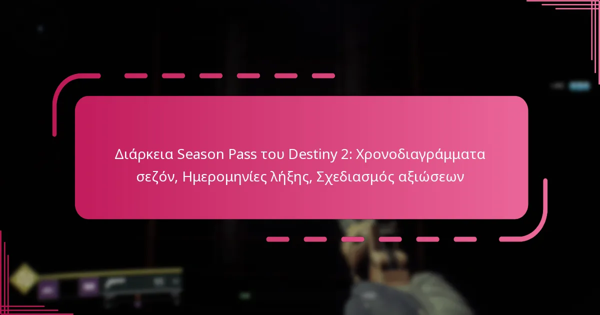 Οι ανταμοιβές του season pass του Destiny 2 λήγουν συνήθως στο τέλος κάθε σεζόν, η οποία διαρκεί περίπου τρεις μήνες. Οι παίκτες πρέπει να είναι ενήμεροι για αυτές τις ημερομηνίες λήξης για να μεγιστοποιήσουν τις ανταμοιβές τους και να αποφύγουν την απώλεια πολύτιμου περιεχομένου.