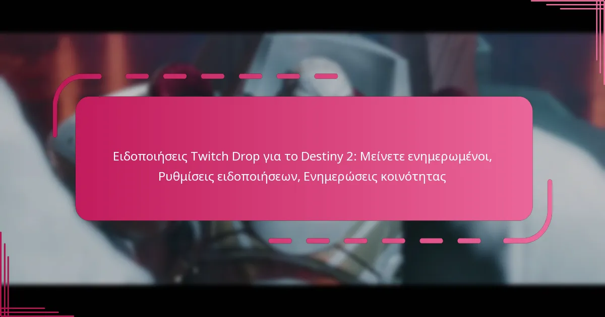 Οι Twitch Drops στο Destiny 2 παρέχουν στους παίκτες την ευκαιρία να κερδίσουν αποκλειστικά αντικείμενα εντός του παιχνιδιού παρακολουθώντας συγκεκριμένα streams στο Twitch. Για να διασφαλίσετε ότι δεν θα χάσετε ποτέ αυτές τις ανταμοιβές, είναι απαραίτητο να ρυθμίσετε ειδοποιήσεις συνδέοντας τους λογαριασμούς σας και ακολουθώντας τα σωστά κανάλια. Η ενημέρωση σχετικά με τις επερχόμενες εκδηλώσεις Twitch Drop θα σας βοηθήσει να μεγιστοποιήσετε τη συμμετοχή σας και να απολαύσετε τα οφέλη της αλληλεπίδρασης με την κοινότητα.